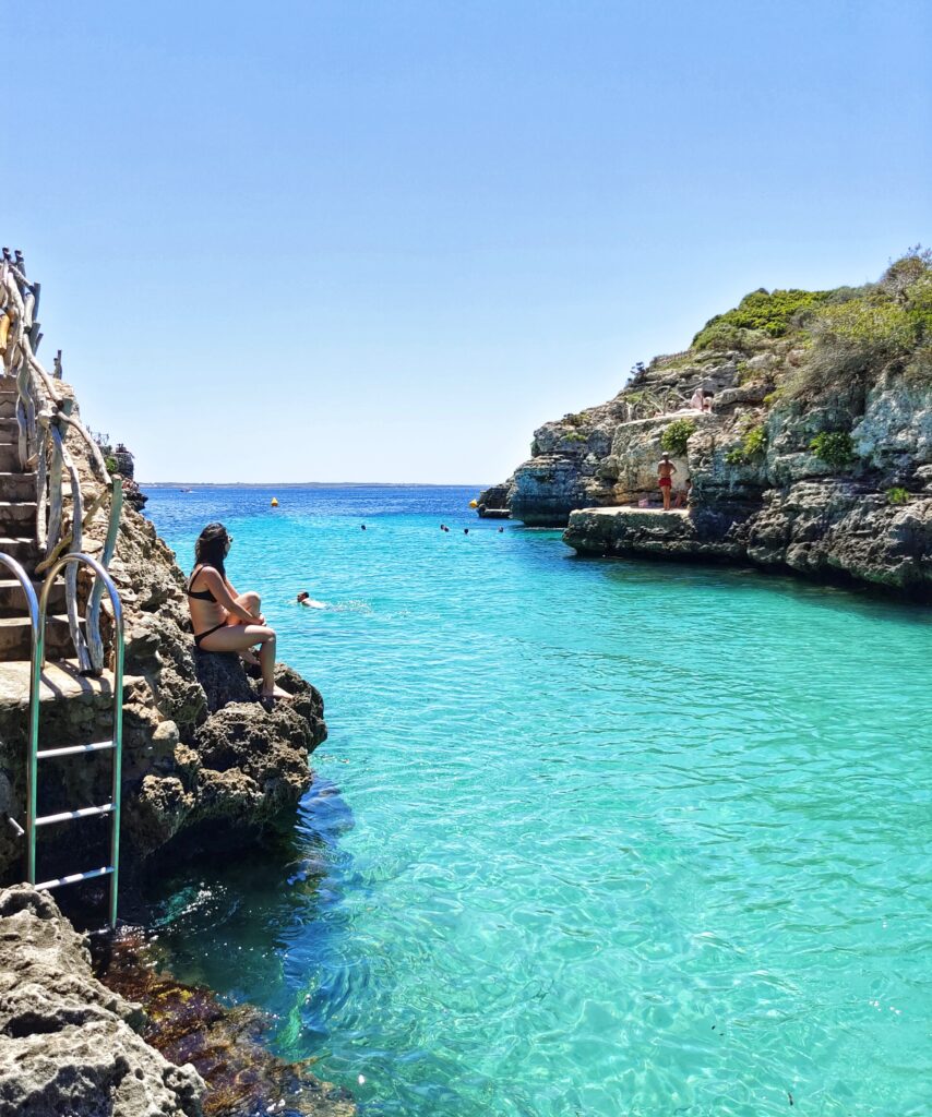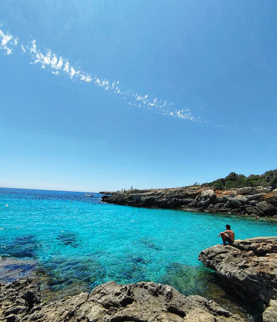 Esta cala en piedra nos ha robado completamente el corazón. Siempre que venimos a Menorca nos pasamos y es que su ubicación y el color azul del agua es una pasada.