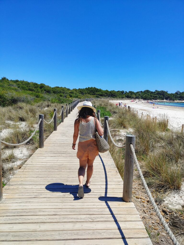 Cómo llegar a la cala Es Talaier: para llegar tendréis que dirigíos a Son Saura y aparcar en su parking, pues la cala Es Talaier no tiene acceso directo. Una vez estéis en Son Saura, tardaréis unos 15 minutos hasta Es Talaier siempre y cuando cojáis el atajo, un pequeño camino de tierra no señalizado, que sale hacia la izquierda desde el puente de madera de la foto que tenéis justo a continuación. De lo contrario, el camino es de casi 1 hora hasta la cala.