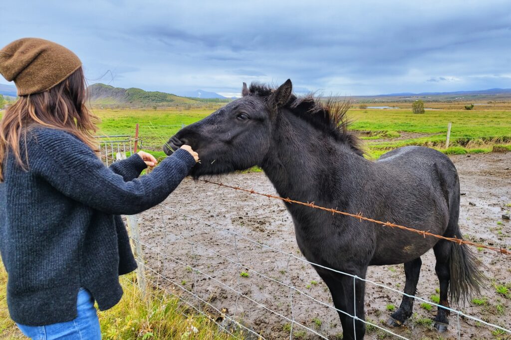 Las paradas improvisadas que hicimos recorriendo El Círculo Dorado fueron varias, pero sin duda los caballos nos conquistaron ? ¡Son tan simpáticos y cariñosos! Además son muy curiosos y se acercan a saludarte en seguida (nada que ver con las ovejas que ¡salen corriendo! ?).