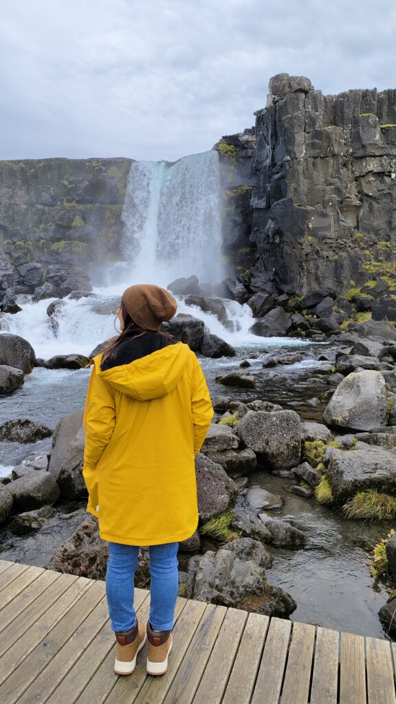 A 45km de Reykjavik, nuestra primera parada del día fue el Parque Nacional de Þhingvellir ó Thingvellir, una de las paradas obligatorias en El Círculo Dorado, además de uno de los lugares históricos más importantes del país, pues los vikingos establecieron aquí el primer parlamento islandés, y el primer parlamento democrático del mundo, en el 930 d.C.