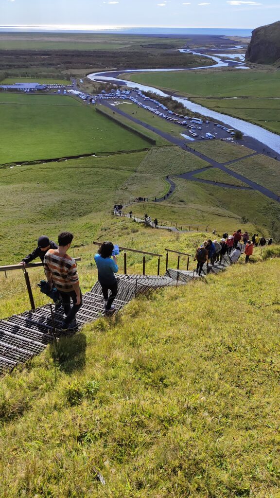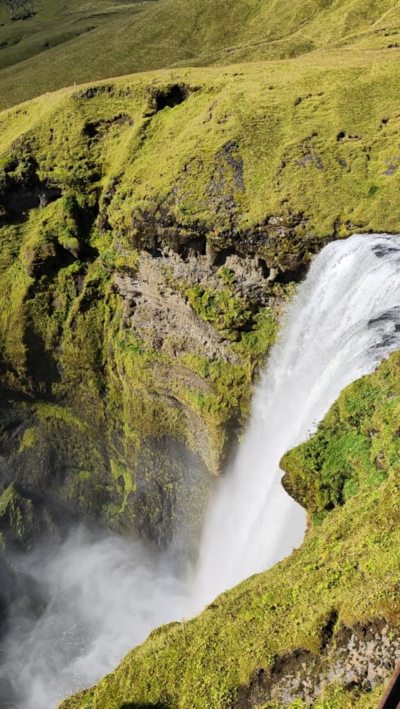 Con sus 62 metros de altura, Skógafoss tiene una fuerza increíble que te hace sentir diminuto. Se puede subir a la parte superior en la que hay un mirador. El acceso hasta la cima es mediante una escalera y la subida es curiosa, pues hay unos cuentos escalones. Pero sin duda ¡las vistas desde arriba lo merecen!