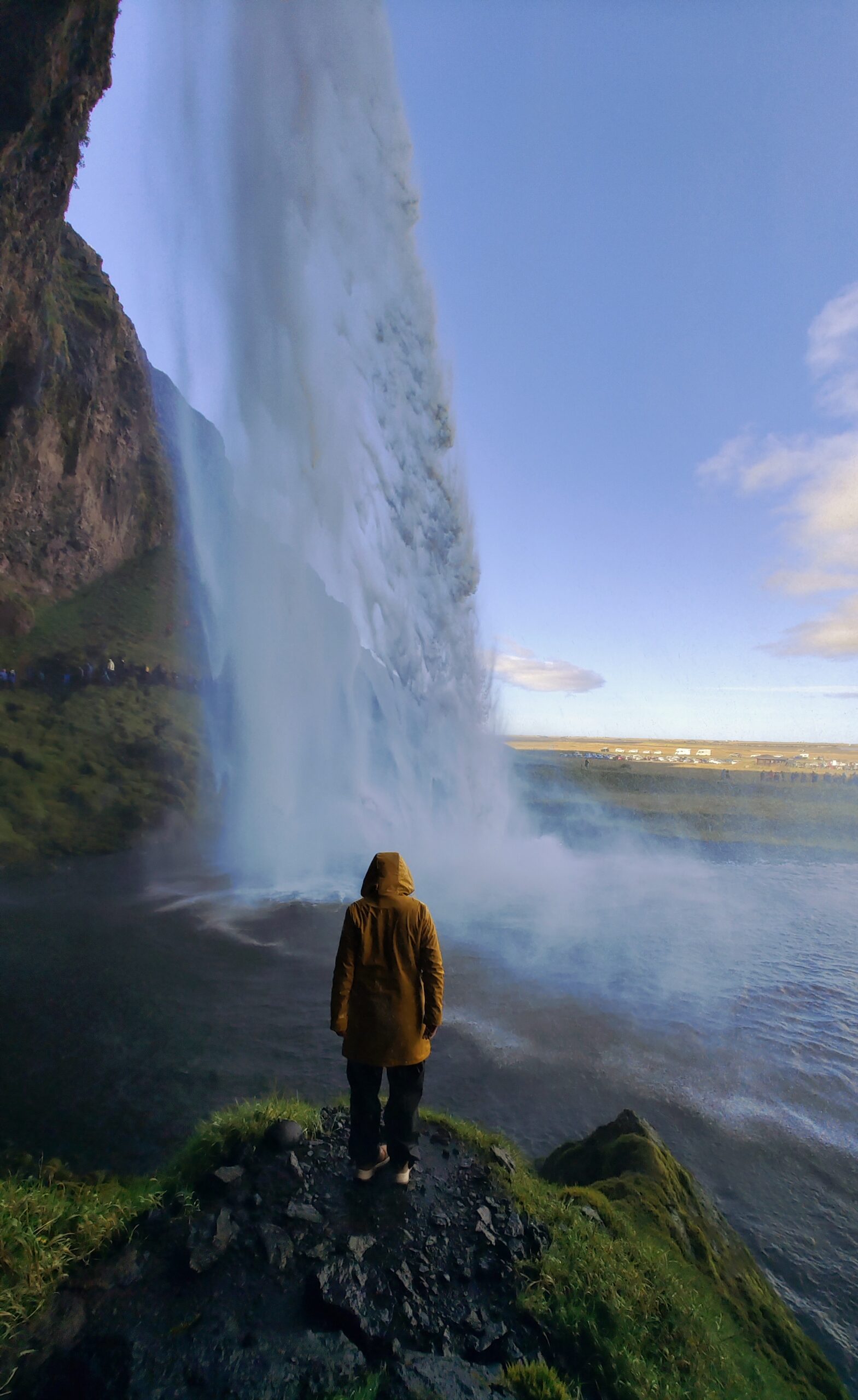 ¡Esta cascada de más de 60 metros es simplemente espectacular! El sonido de la caída de agua se escucha desde bastante lejos y realmente te deja sin palabras. Además, el entorno y que se puede pasar por detrás de la caída de agua, la convierte en una de las cascadas más especiales de Islandia. Te mojas un poco recorriendo la parte trasera, pero la sensación es brutal y sin duda merece la pena.