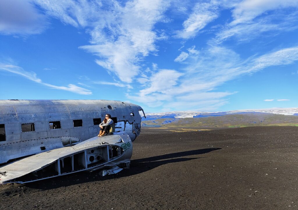 En noviembre de 1973 un avión de la Marina de Estados Unidos tuvo que realizar un aterrizaje de emergencia en la costa sur de Islandia debido a un problema con el combustible. En dicha maniobra nadie resultó herido y consiguieron aterrizar en la playa de arena negra de Sólheimasandur. Retirar los restos del avión era demasiado caro y se dejaron en la playa. Hoy en día se ha convertido en uno de los puntos más visitados y fotografiados de la isla, siendo una de las paradas más curiosas de nuestro road trip 🙂