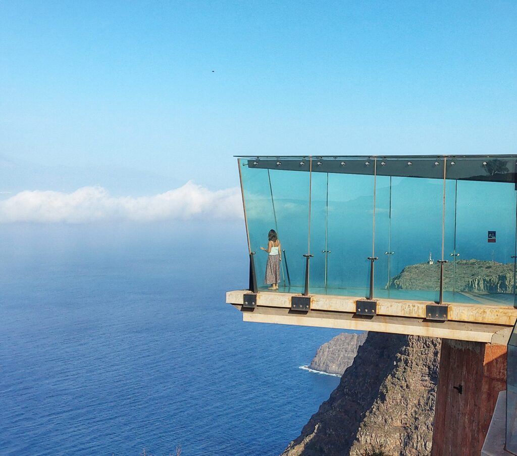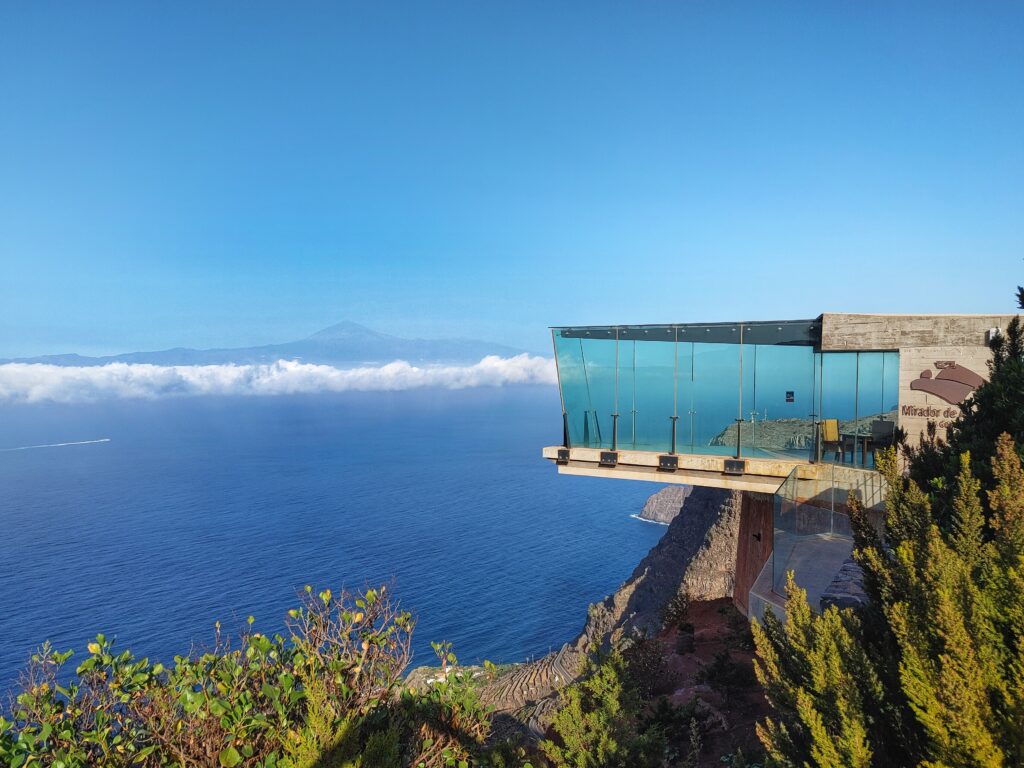 Inaugurado en 2013 y construido sobre el risco de Abrante, este mirador es parada obligatoria en La Gomera. Es impresionante: una pasarela de cristal sobre el pueblo de Agulo y con vistas increíbles sobre la vecina Tenerife y el Teide. Para nosotros uno de los mejores miradores de la isla, y desde luego el que más nos impresionó.