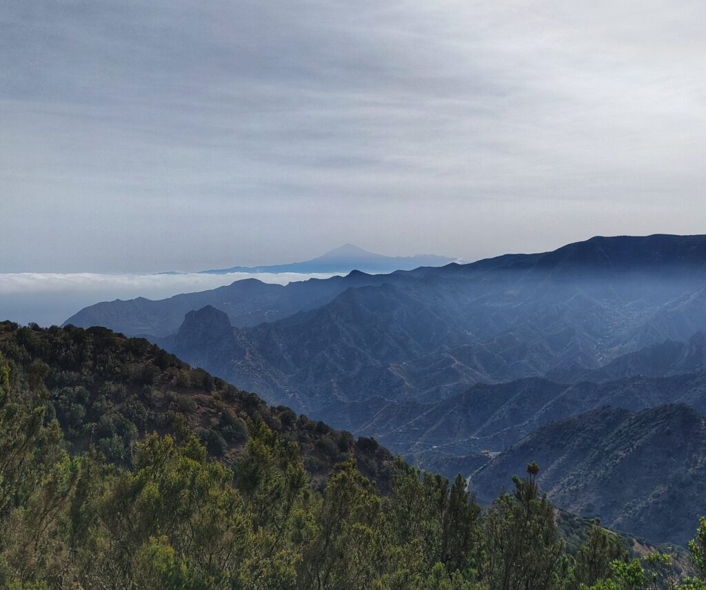 Ambos miradores están en la misma carretera que sube a las montañas desde San Sebastián de la Gomera y ofrecen vistas a Los Roques desde ambas vertientes. Y al fondo, el pico del Teide.
