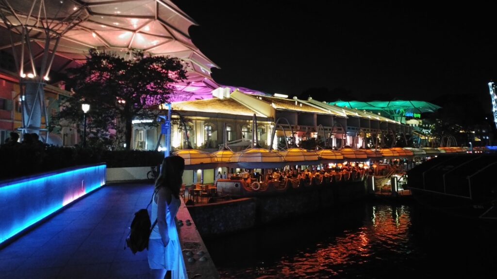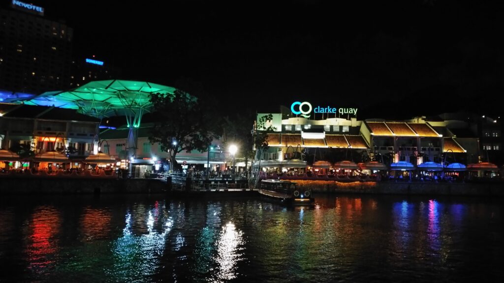 Desde este punto, decidimos aprovechar para cenar y disfrutar en Clarke Quay. Es una zona increíble llena de restaurantes, bares, música… ¡parecía que estábamos en España del ambientazo! Cenamos allí y nos quedamos disfrutando de una sobremesa llena de ritmo. Despedida perfecta para este segundo día en la ciudad 🙂