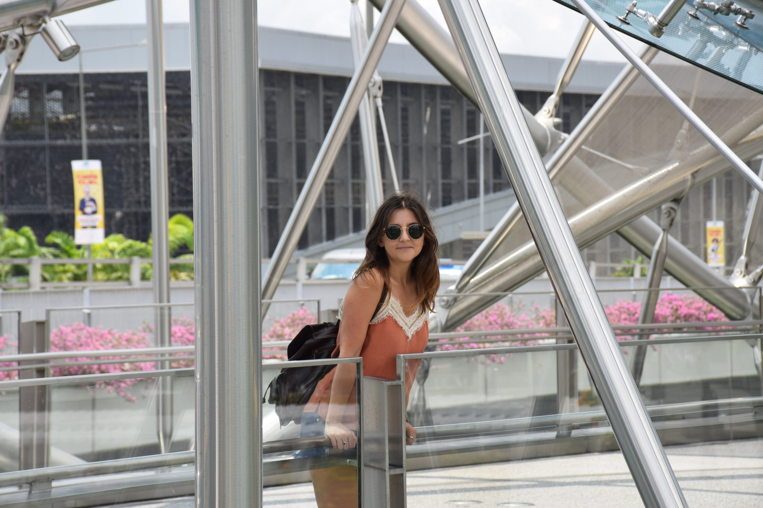 Desde aquí fuimos caminando a través del Jubilee Bridge hasta la Esplanade, para después atravesar la Pasarela Helix. El calor y la humedad durante este paseo fueron intensos, ya que tampoco hay muchas sombras en las que refugiarse, pero disfrutamos de las vistas constantes del Marina Bay Sands, la Flor de Loto, el Teatro de la Ópera y el Singapur Flyer como en una postal.