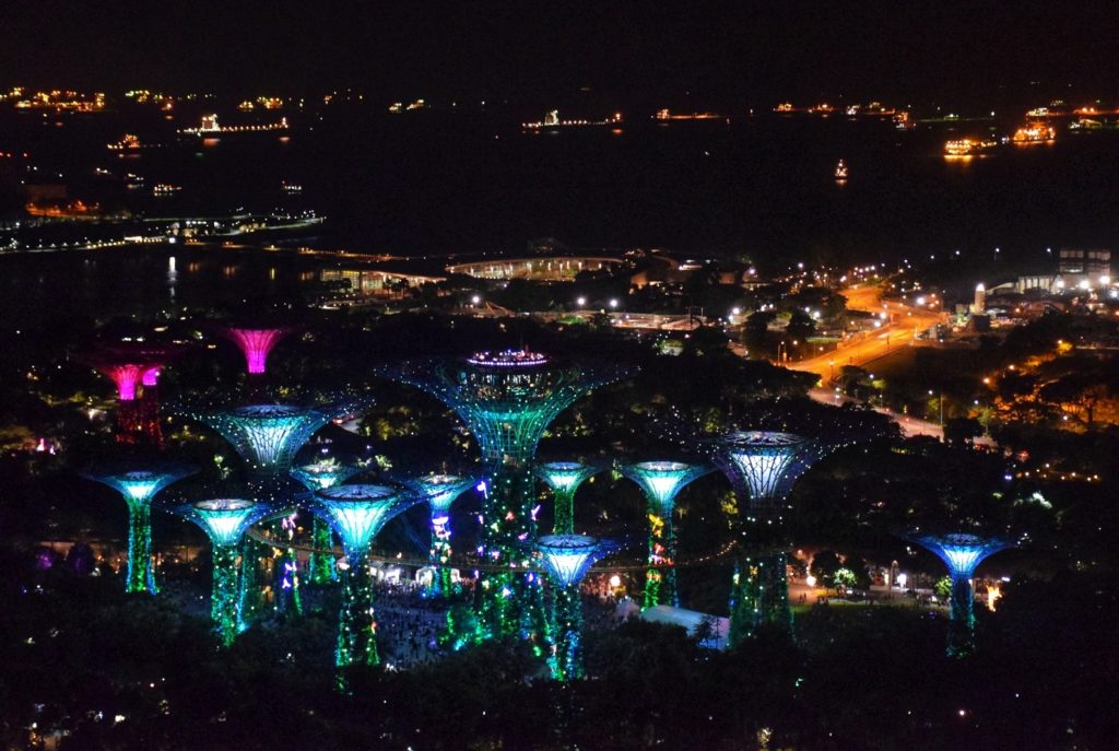 Una vez cae la noche las vistas desde aquí se transforman totalmente, y la ciudad luce más bonita si cabe. Aprovechamos para pasear por la zona de la Bahía, la zona financiera y cenamos de manera improvisada en un “Food Court”. La ciudad iluminada es increíble y la temperatura a esas horas es mucho más suave, por lo que dejarse llevar no es para nada mal plan 😉